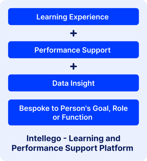 intellego is an ‘all in one’ learning and performance support platform designed to enhance employee productivity and effectiveness. By offering real-time access to knowledge, learning, tools, insights and guidance, it empowers employees to excel in their roles. Intellego adopts a performance support methodology to unleash the full potential of individuals and drive tangible outcomes for organisations.