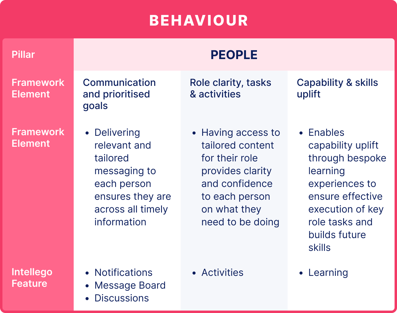 Prior to implementing any new platform within an organisation, such as a learning and performance platform like intellego, it is crucial to thoroughly understand our client’s organisational goals. This involves devising an implementation plan that prioritises aligning people, processes, and technology toward those goals, ensuring everyone is on the same page.